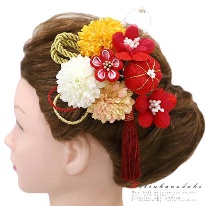 楽天市場 髪飾り 成人式 花 振袖 つまみ細工 袴 2点セット 赤 白 黄色 金 ピンク 薄ピンク ちりめん 房付き 房 組紐 パール 和 和柄 大きい おしゃれ 可愛い 上品 華やか レトロ 粋 派手 人気 古典 髪型 ヘアス